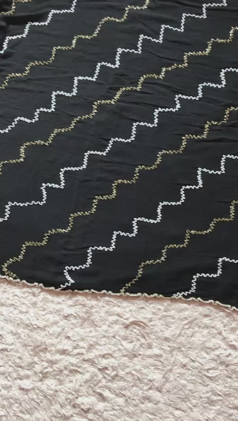 *#BLACK BEAUTY #* Posh & Premium Pure Chinnon Crepe Chiffon drapes of luxury embellished with royal pearl cut daana zig zag handwork along with cut work pearl cut daana resham thread handcrafted border with running bp
