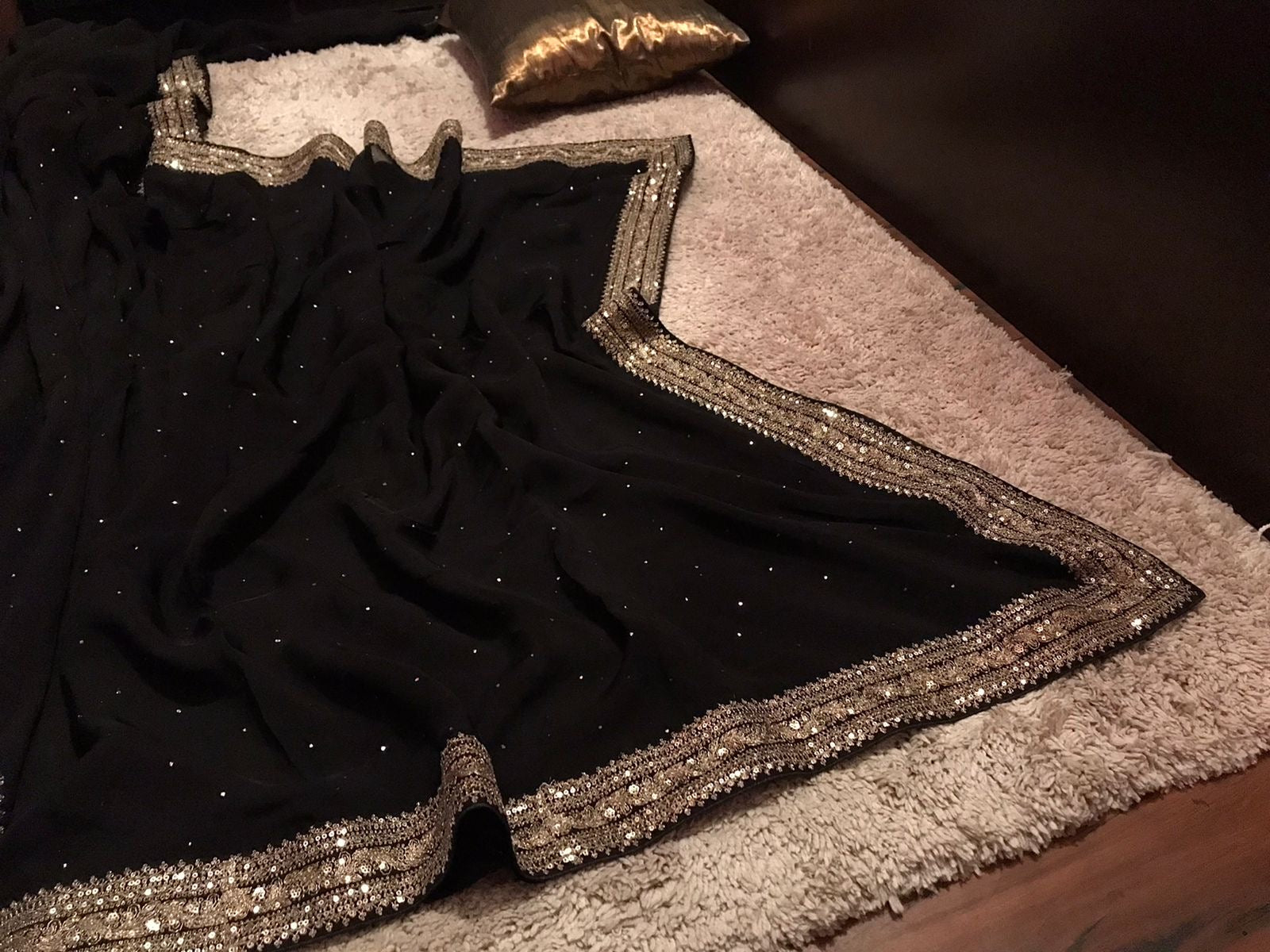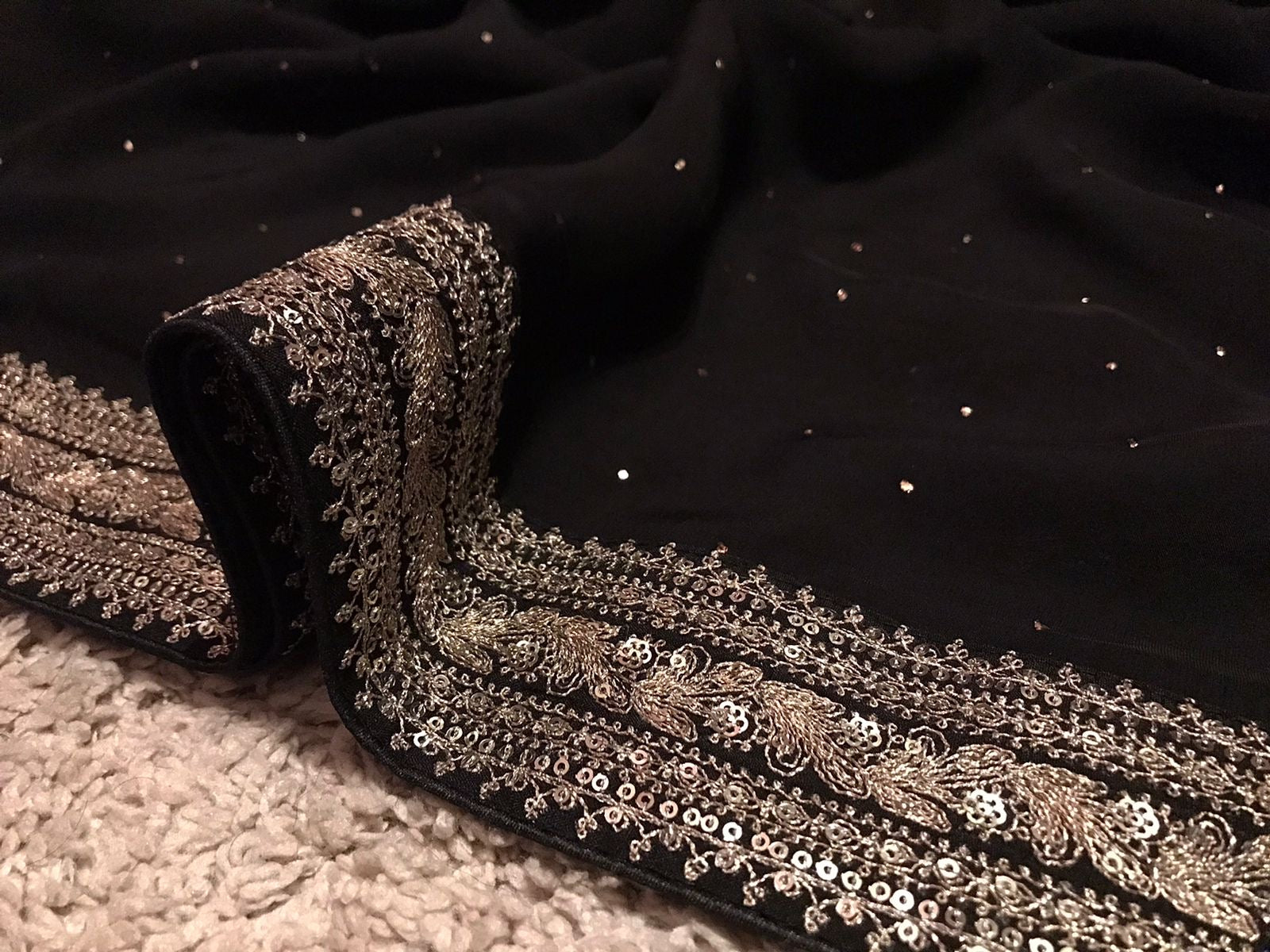 Exclusive Black Premium Pure Organza Silk saree embellished with luxurious mukaish handwork embellished with classic SabyaSachi zari lace border & butter soft velvet bp