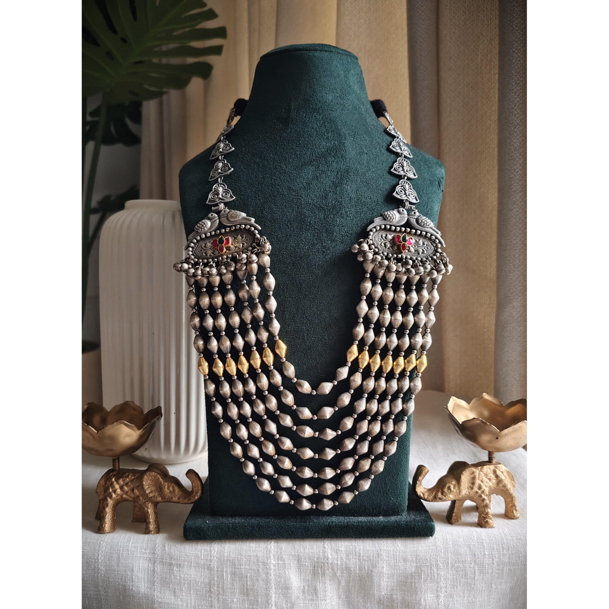 Beautiful Designer Dholki Beads Dual Tone Layered Necklace With Jaipuri Kundan Detailing