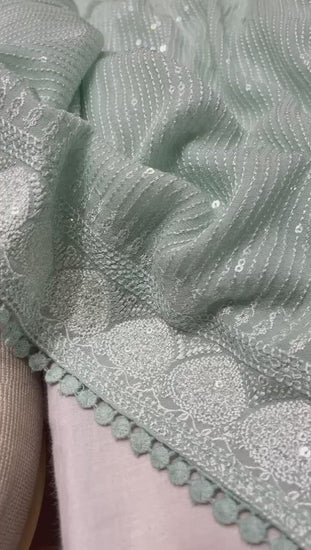 On pure georgette silk with sequence work, *sabyasachi’s design*