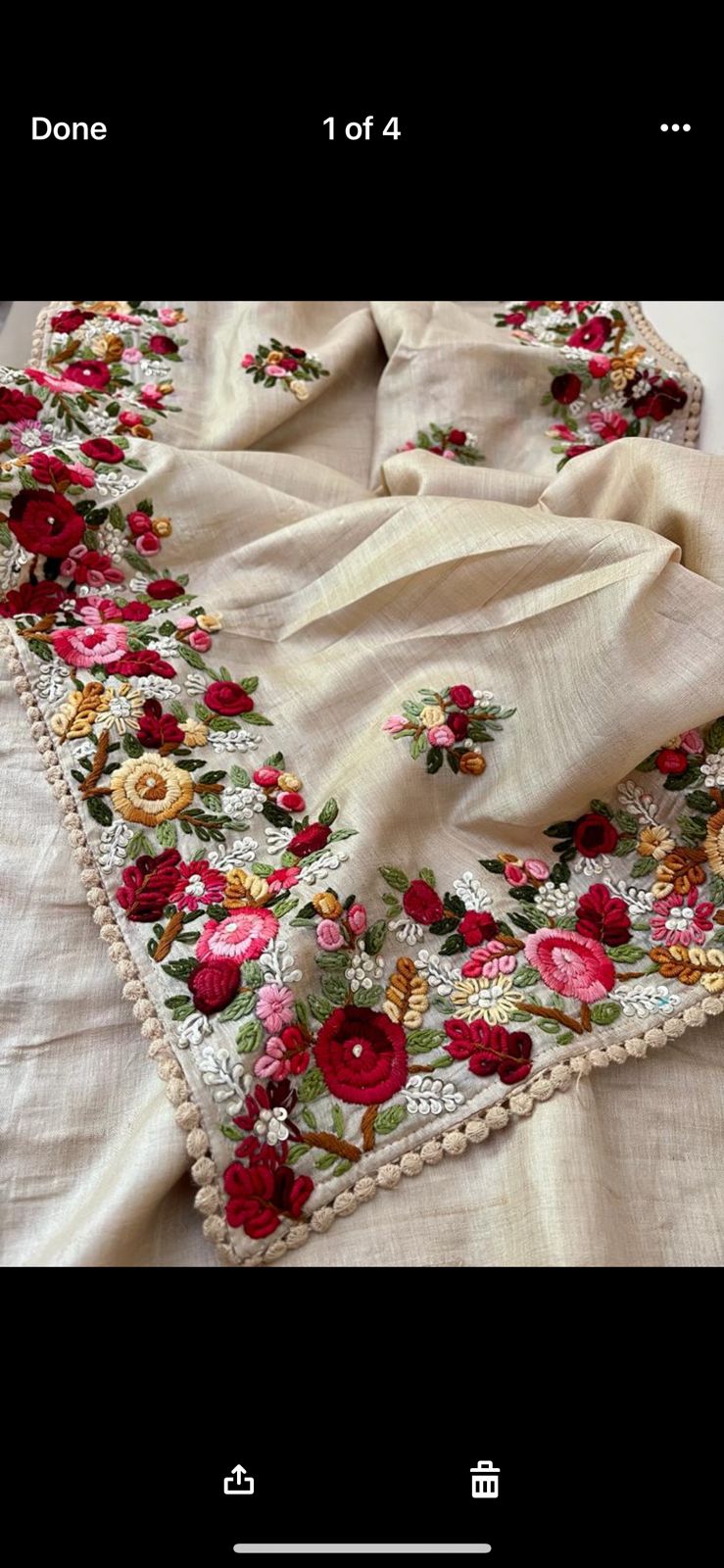 French knot embroidery on tussar fabric . It’s wid blouse piece.